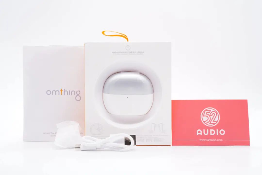 充电盒顶部设计有“omthing”品牌LOGO