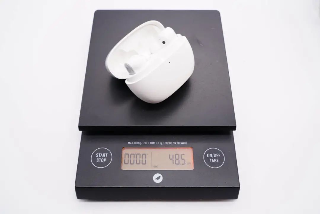 经我爱音频网实测,omthing AirFree2 真无线耳机整体重量约为48.5g