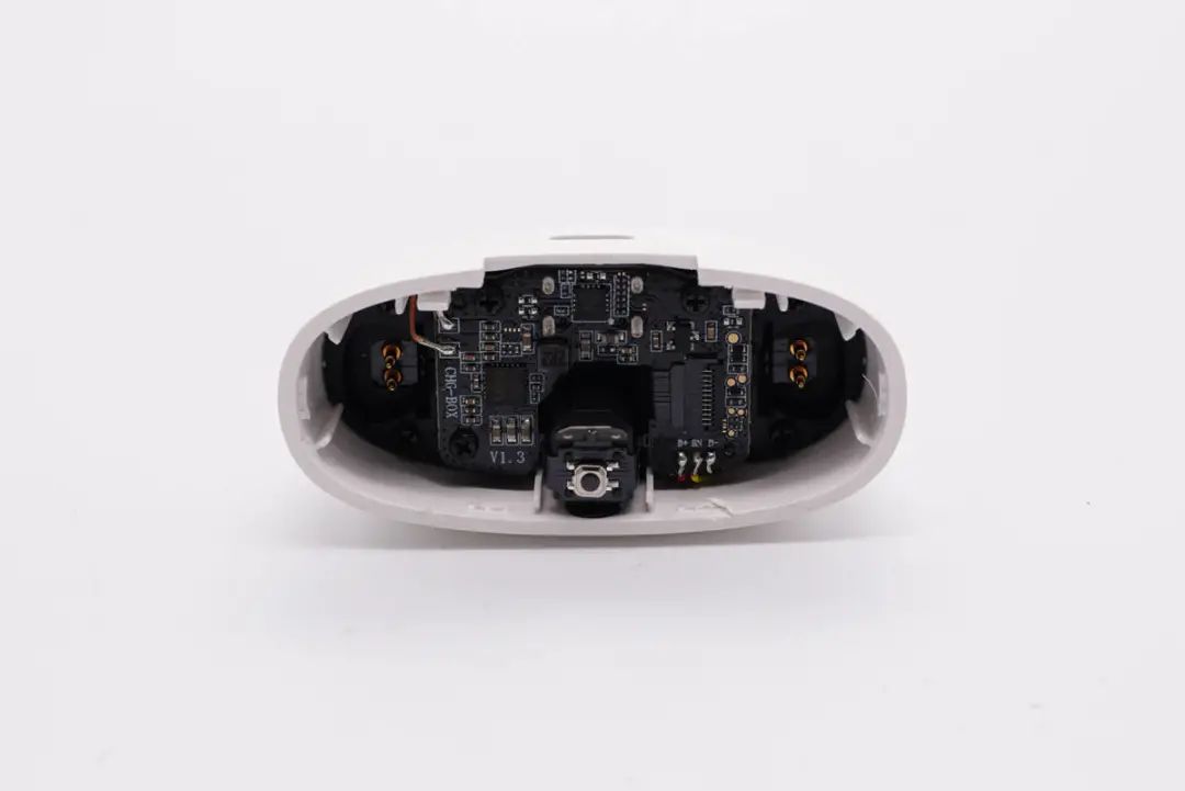 撬开充电座舱,充电盒内元器件并未固定在座舱上,而是充电盒壳体内。