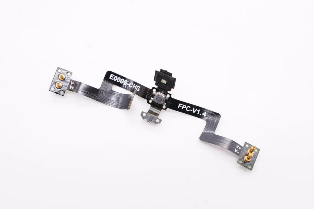 耳机头内扬声器、电池、光感元件连接到一条FPC排线上,再与主板连接。