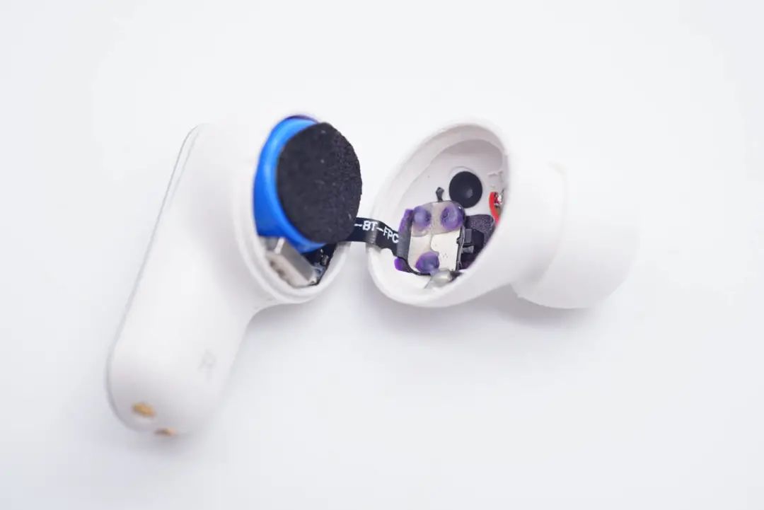 撬开耳机背部盖板,腔体内部结构一览。