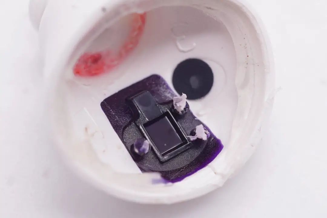 红外光学距离传感器特写,用于入耳检测功能,实现摘取自动暂停、佩戴自动恢复播放。